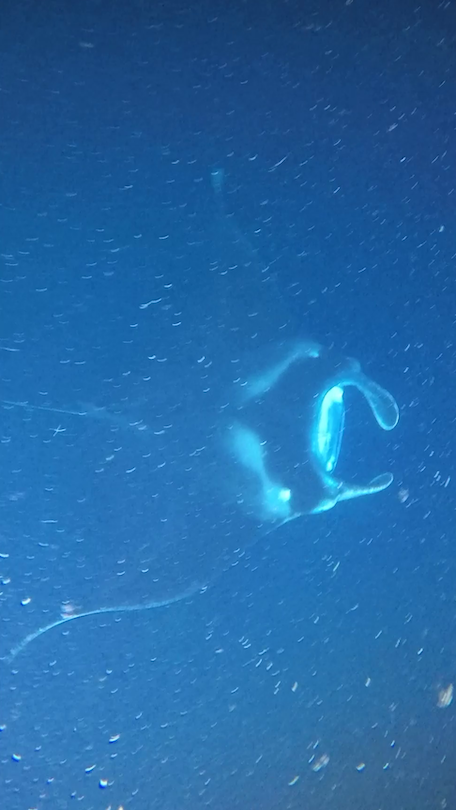 Immediately, I could see two manta rays right below me, just inches away. Under the water, things appear much closer than they actually are. Thinking that I might actually touch them, I swam very carefully towards the floating rig where others were already lining up. Once I reached the rig, I grabbed the bar, and a crew member helped me put my pool noodle below my ankles to keep my feet from dangling in the water. I then settled down to watch the most exhilarating show I’ve ever seen! As the manta rays feed and perform multiple flips, they may brush up against you lightly. It. Was. Surreal.