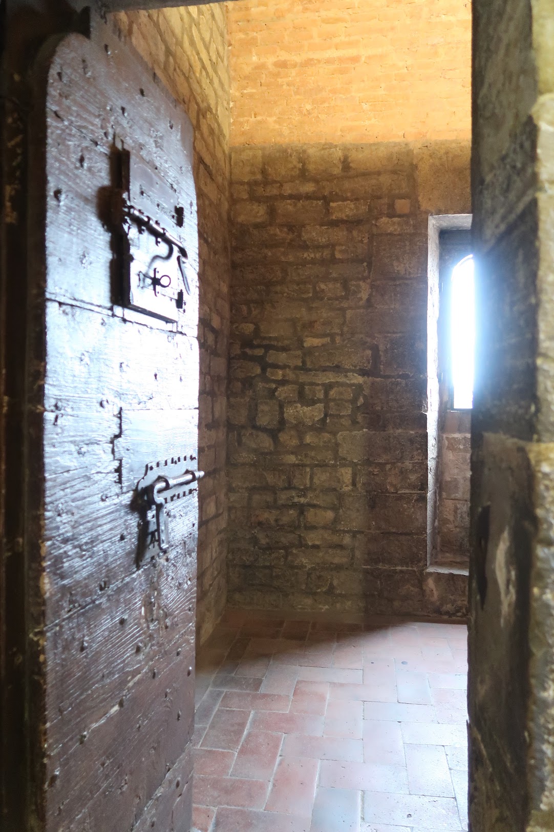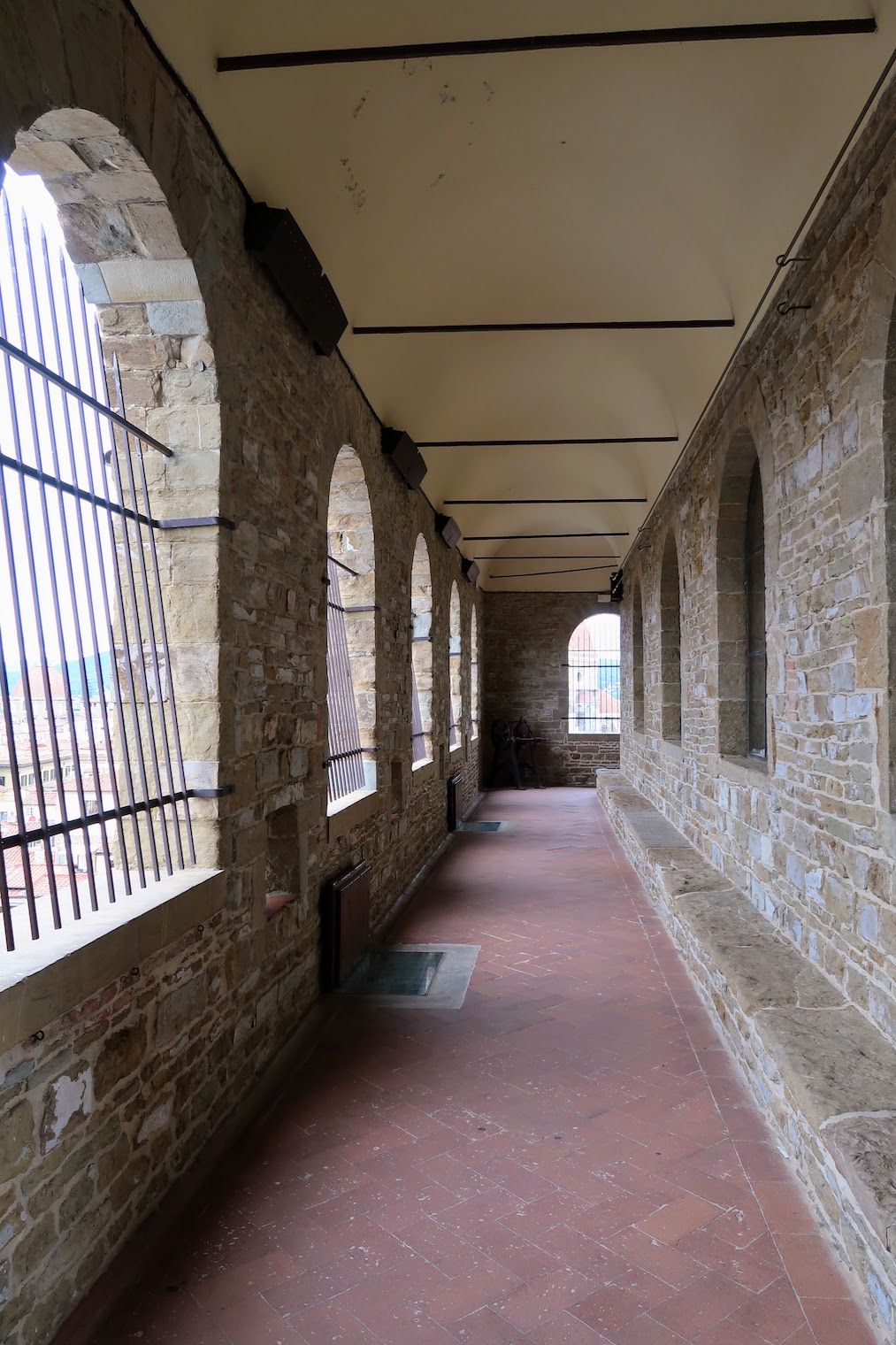 Soon, you climb up to a landing and will see battlements (medieval guard walk) with semi-open views of the city on one side and cells on the other. These very cells imprisoned Cosimo de Medici (the Elder) in 1435 and Frair Girolamo Savonarola in 1498. While Medici was imprisoned before being exiled from Florence for a year for plotting against the republic of Florence, Savonarola was waiting to be executed as a heretic. Florentines from the time nicknamed the prison the “Albergaccio” (or “very bad hotel”)!